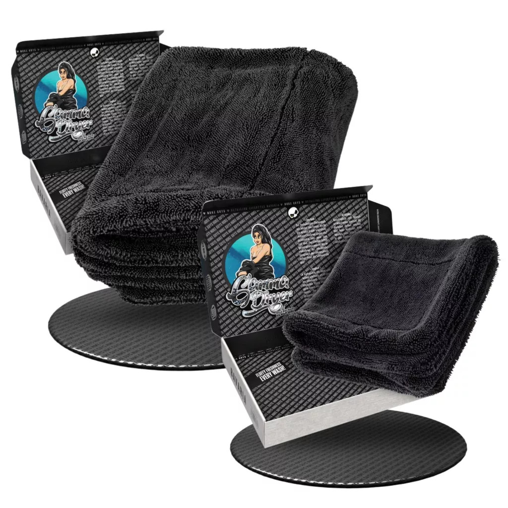 Nuke Guys Gamma Dryer – Set prosoape uscare auto Black este un kit premium din microfibră cu absorbție foarte mare (1400 GSM), ideal pentru uscare rapidă după spălare fără urme și fără scame. Setul include 1 prosop 50×80 cm pentru suprafețe mari și 1 prosop 40×40 cm pentru detalii (oglinzi, muchii, praguri). Microfibra cu fir răsucit ajută la o uscare eficientă și delicată cu vopseaua.